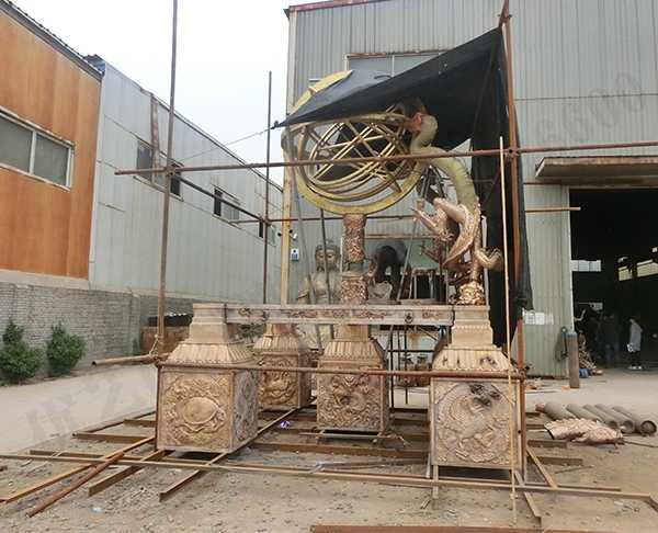 TIME:2019-08-06 銅雕塑渾天地動(dòng)儀在天文儀器史上占有重要地位,相當(dāng)于現(xiàn)在的天球儀。公元132年,張衡發(fā)明了測(cè)定地震方位的銅雕塑渾天地動(dòng)儀。銅地動(dòng)儀用純銅制成,圓徑八尺,形似酒樽,內(nèi)部安置機(jī)關(guān),按照八個(gè)方向,裝八個(gè)龍頭,龍嘴里各銜著一個(gè)小銅球,下面蹲著八只張嘴的蟾蜍。如某一方向發(fā)生地震,同方向的龍嘴里就吐出銅球,落到蟾蜍嘴里,人們就可以知道什么方向發(fā)生了地震。公元138年,地動(dòng)儀準(zhǔn)確地測(cè)定出在隴西(今甘肅地區(qū))發(fā)生的強(qiáng)烈地震。...